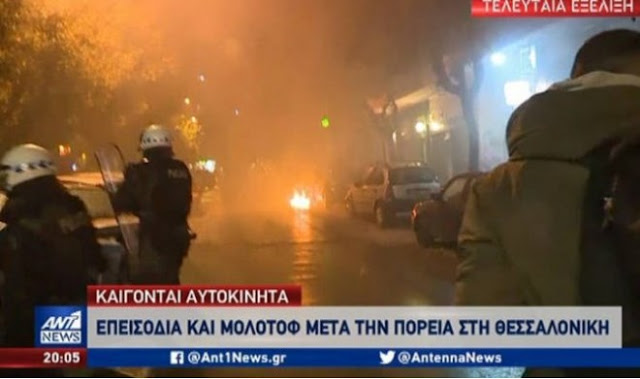 Ξέφυγε η κατάσταση μετά την πορεία για το Πολυτεχνείο στη Θεσσαλονίκη, με επεισόδια να ξεσπούν στους δρόμους της πόλης.